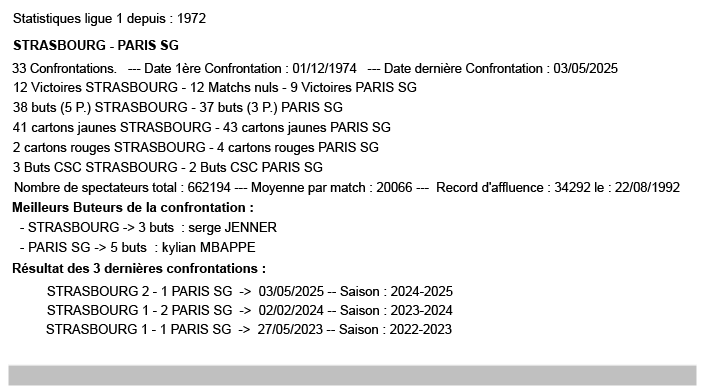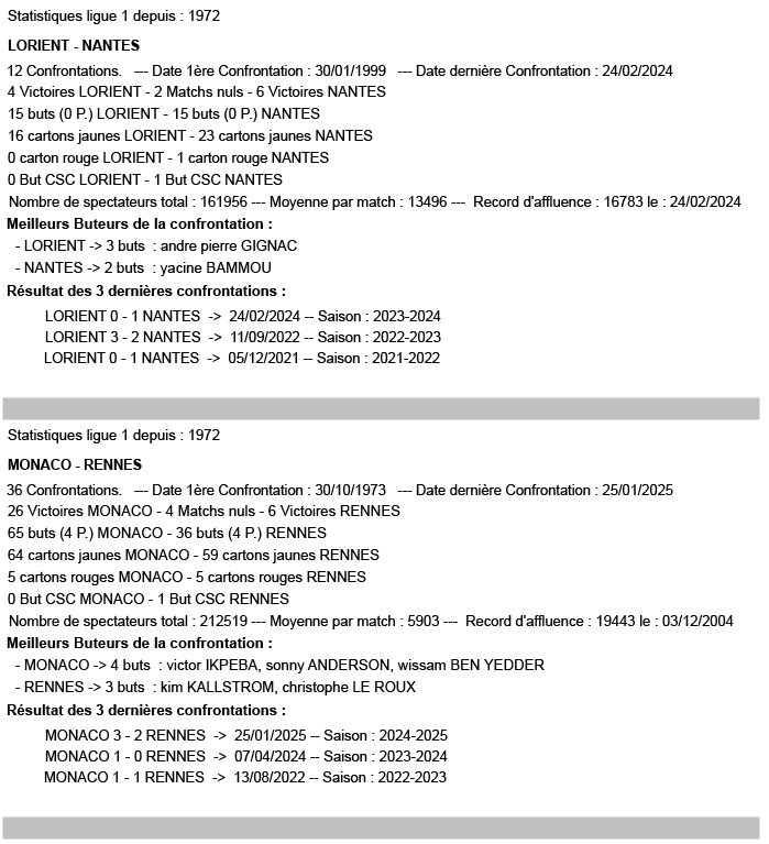 Les statistiques sont à considérer sur l’affiche (exemple pour Lens – Le Havre : toutes les confrontations à Lens en Ligue 1 depuis 1972).