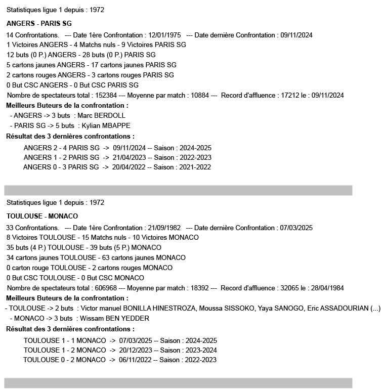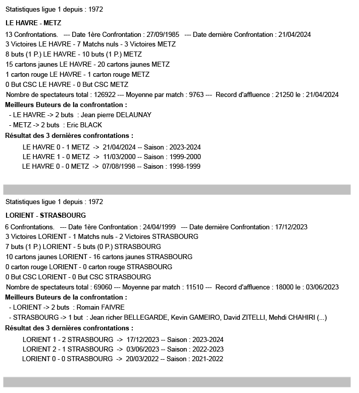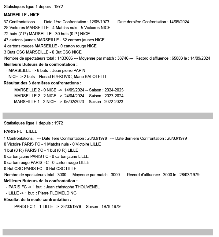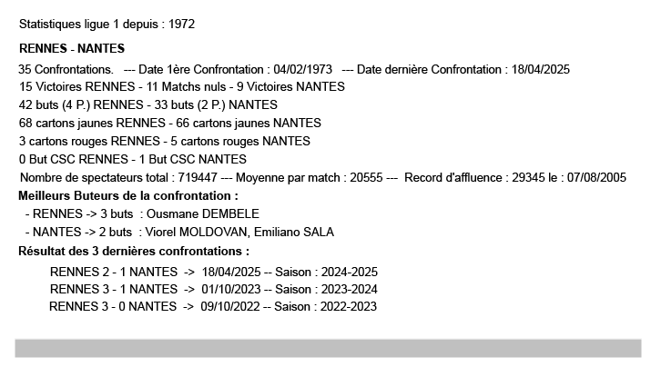 La 31ᵉ journée de Ligue 1 en chiffres : Les statistiques sont à considérer sur l’affiche (exemple pour Brest– Lens : toutes les confrontations à Brest en Ligue 1 depuis 1972).