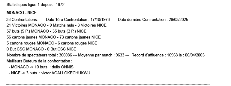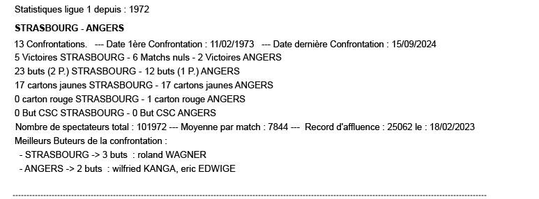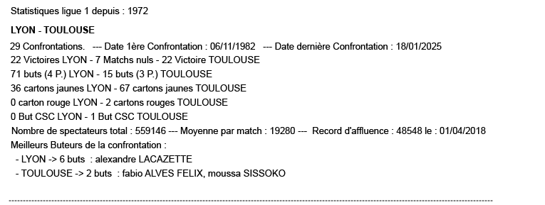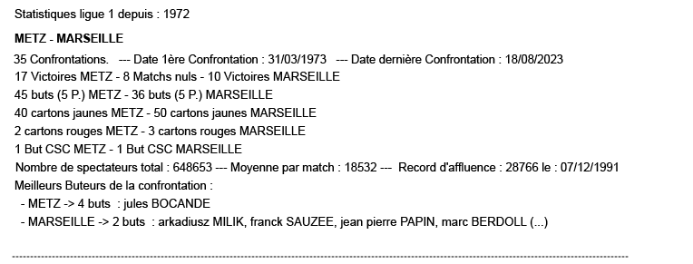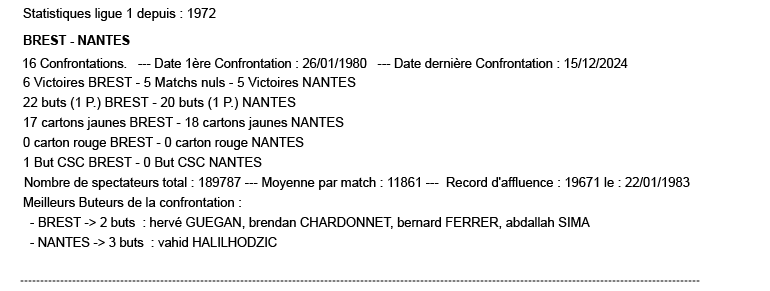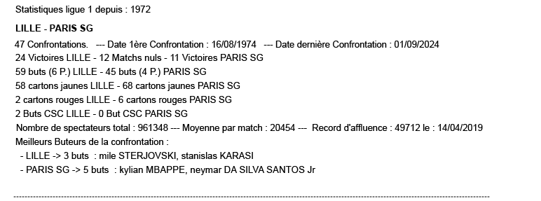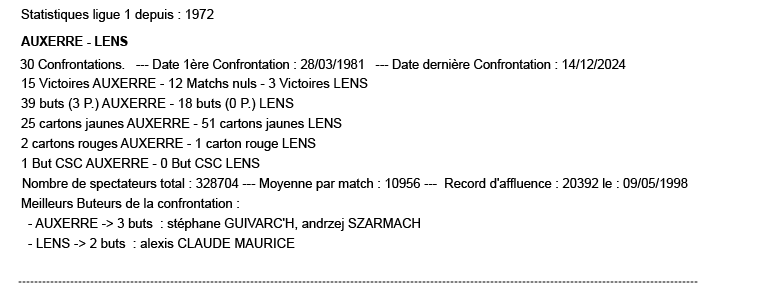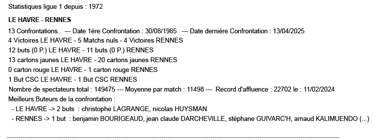 Les statistiques sont à considérer sur l’affiche (exemple pour Paris FC- Lorient : toutes les confrontations à Paris).