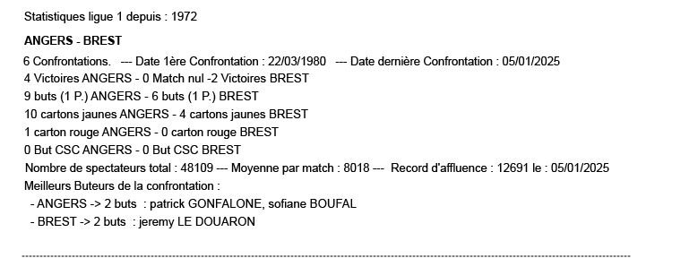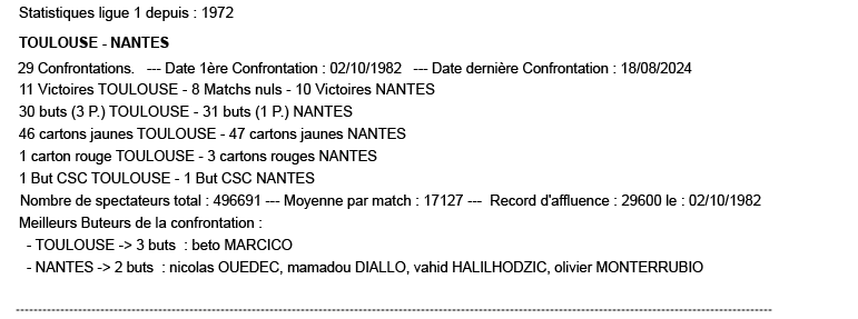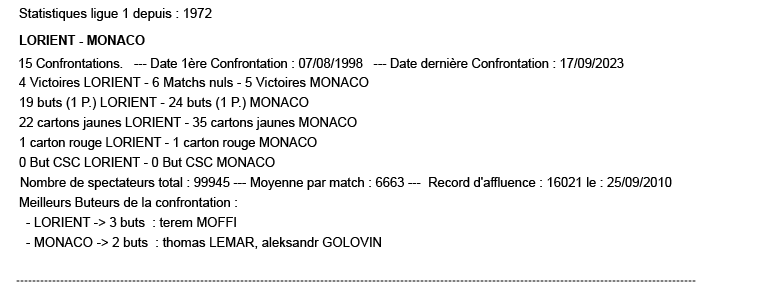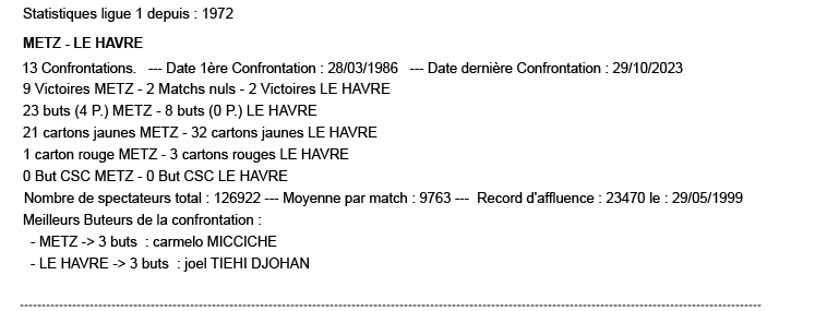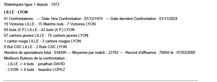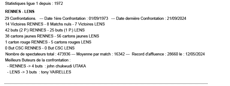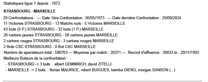 Les statistiques sont à considérer sur l’affiche (exemple pour Strasbourg- Marseille : toutes les confrontations à Strasbourg).