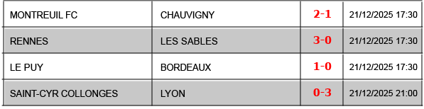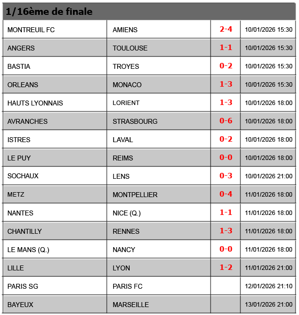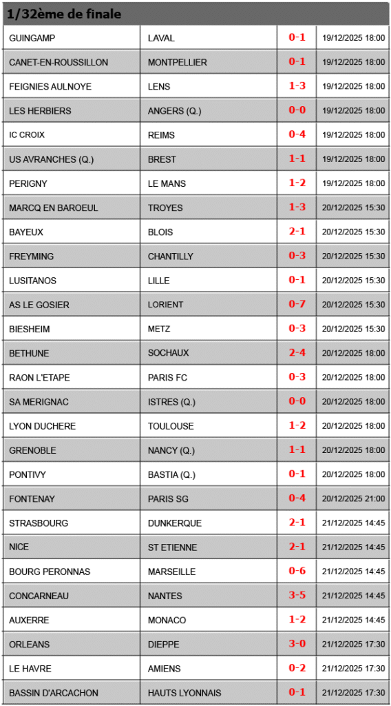 Résultats COUPE DE FRANCE – 2025-2026