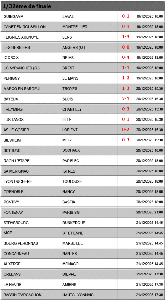 Résultats COUPE DE FRANCE – 2025-2026