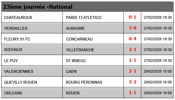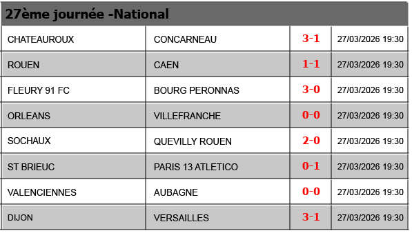 Résultats National – 2025-2026 J1J2J3J4J5J6J7J8J9J10J11J12J13J14J15J16J17J18J19J20J21J22J23J24J25J26J27J28J29J30J31J32J33J34